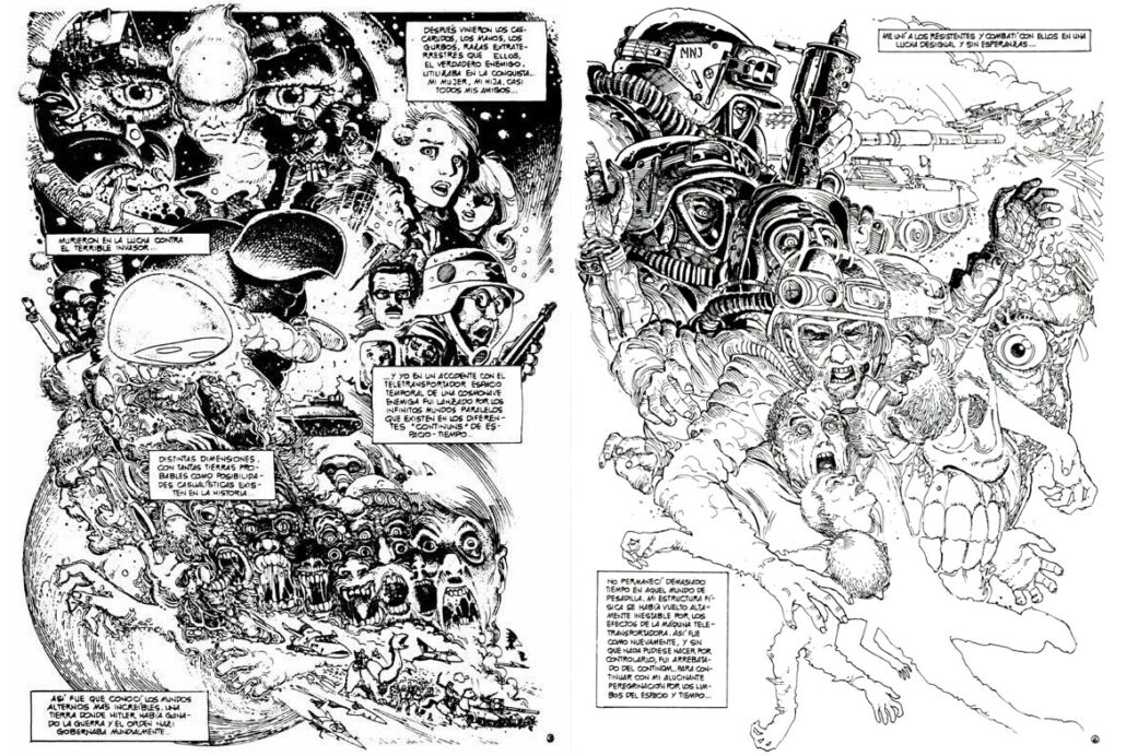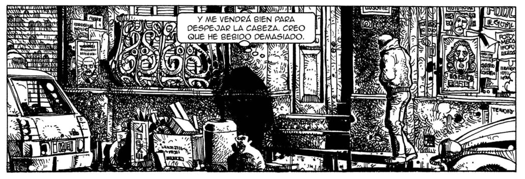 El segundo detalle es que esa metatextualidad que acá se insinúa apenas en una viñeta, va a ser un tópico recurrente en Ciudad II una secuela de calidad muy inferior que surgiría varios años después. Aún una idea tan amplia como la de Ciudad es difícil de revisitar sin provocar cierta sensación de repetición y, aunque considero a García Durán un profesional de primer nivel, los zapatos de Juan Giménez son imposibles de llenar. Solo diré que en esa segunda parte hay un gordito friki que todo el tiempo les advierte a los personajes de los peligros que le acechan porque los está leyendo en una historieta.