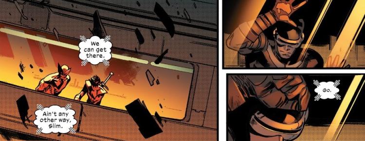 Sin duda alguna, el número anterior nos auguraba lo peor. Las pistas de una misión suicida y una tragedia, se sentían a flor de piel. Las palabras de Magneto y Xavier sobre no morir realmente por volverse historia y fundar una nación, entre otras cosas, dejaban en claro que, al menos Cyclops, parecía tener comprado su ticket al otro mundo (otra vez).