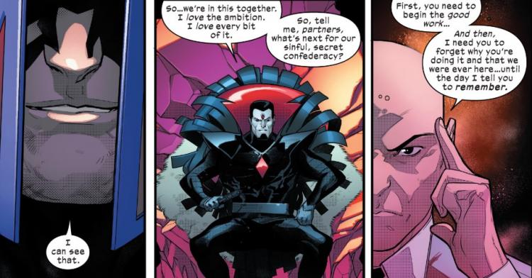 Este es crucial. ¿Qué mutante siniestro con lavado de cerebro fue reemplazado antes de que lo sepa un calvo? Sinister recuerda lo que pasó con Xavier (el calvo), porque el que lo olvidó fue reemplazado. Sinister juega su propio juego.