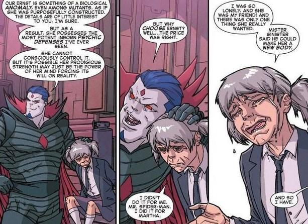 Las muestras destruídas. El mutante con progeria (enfermedad de envejecimiento prematuro) con lazos siniestros. Ernst encaja a la perfección, y robó muestras para Sinister en el pasado.