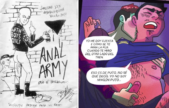 Amo pensar que se habría llevado muy bien con Ioshua con esa impunidad necesaria de mostrar pijas y culos a lo loco, con las birras compartidas en sus historias, las drogas, el punk y la euforia. “Pija mucha pija / a la tarde en mi cama toda revuelta / con el chonguito de la esquina. Un poema / cualquier poema / re manija de merca y con la remera manchada / de guasca, / mi amor, / vamos para la estación a pegar base” escribía Ioshua, el iniciador de su propia corriente, la “Nueva Poesía Gay Argentina”, en “Cualquier poema”, de “Pija, birra y faso” (Nulú Bonsai, 2009). Pero también por la intimidad. Ambxs expresan eso de lo privado que no se debería decir, que no se debería publicar y lo hacen igual porque hacerlo es necesario, es liberador. Estoy hablando de dos artistas que, a pesar de la distancia de años, siguen la misma lógica: mostrar la sexualidad, normalizarla y enfrentar a los defensores del buen gusto y las buenas costumbres. ¡Que se caguen! Gritan a dueto con sus dibujos, con sus palabras y sus ganas de reventar la mecánica hegemónica del cis-heteropatriarcado, sistema de opresión viviente a la que le damos cuerda nosotrxs mismxs ocultando ese pedacito de “perversxs” y fetichistas que tenemos aunque la obligación de negarlo esté en todas partes.