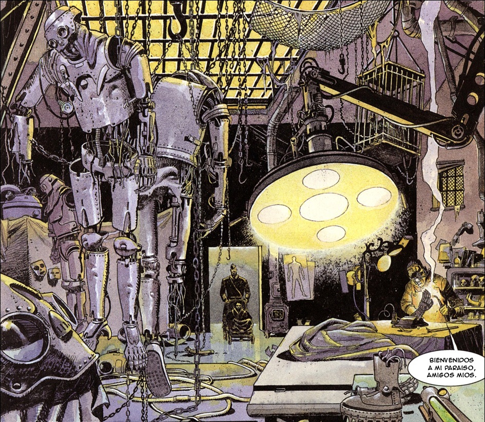 En un flashback vemos que 1911, el coronel Mirreau y el profesor Kropp crearon un batallón de súper soldados para intervenir en el conflicto colonial de Marruecos. El cuerpo de centinelas se compone de soldados que sufrieron amputaciones por sus heridas de guerra cuyos miembros perdidos son reemplazados por prótesis metálicas y un blindaje de casi dos toneladas que solo pueden mover gracias a unas baterías eléctricas y el uso del Dexinal, una droga que potencia su fuerza.