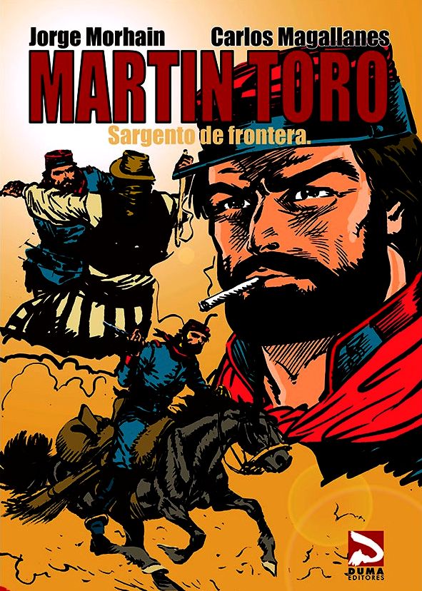 Este clásico gauchesco correspondiente a la etapa industrial de nuestra historieta, fue creado por el escriba Sergio Almendro y el artista Carlos Casalla en 1967, para la revista El Tony. Replicando en cierta forma el rotundo éxito de Cabo Savino, Editorial Columba publicó al personaje ininterrumpidamente hasta bien entrada la década del noventa, totalizando casi quinientos capítulos. Entre 1981 y 1987, el serial contó con una gran dupla creativa, conformada por el prolífico guionista Jorge Morhain (Bs. As. 1942) y el talentoso dibujante Carlos Magallanes (Entre Ríos, 1942-Bs. As. 1987). Hacia Diciembre de 2025, Duma Ediciones lanzó al circuito de comiquerías Martín Toro: Sargento de Frontera, libro de 160 páginas, B/N, formato 24X17 cms. que rescata los primeros quince episodios de este período, originalmente publicados en El Tony Color y El Tony Super Color (1981-1982). Sin la tipografía a máquina y el nefasto color característicos de aquella editorial y con un extenso prólogo de su editor, Ricardo De Luca.