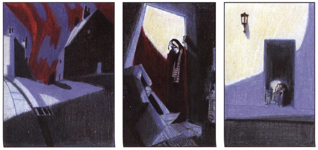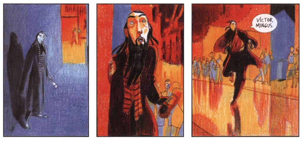 Desde la primera página, resuelta en base a rojos, bordó y diferentes valores de azul, queda claro que la intención no es realista sino que el color está al servicio de la atmósfera que se quiere crear. Aunque, en este caso, también va un paso más allá porque, al abandonar el realismo, el color se transforma en signo.