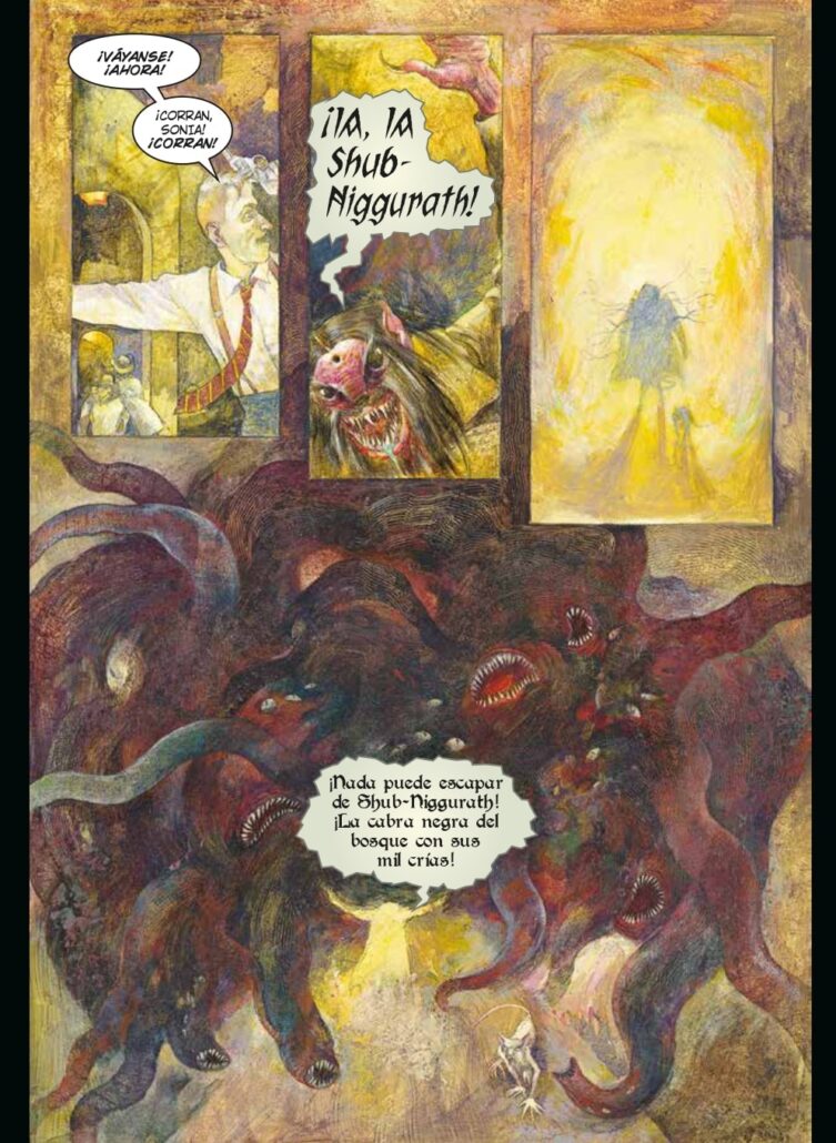 Como punto en contra, no suma nada al otro tipo de fanático, el elitista que ya no puede sorprenderse con nada (y hasta incluso darse el gusto de criticar el largo de un tentáculo de Shoggoth). Lovecraft hay demasiado, y un guion que se nota que fue hecho para presentar una película, en un medio como el comic depende 100% de un artista supremo para no hacer humo.