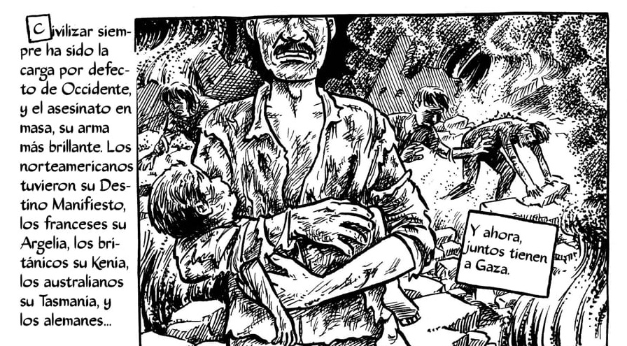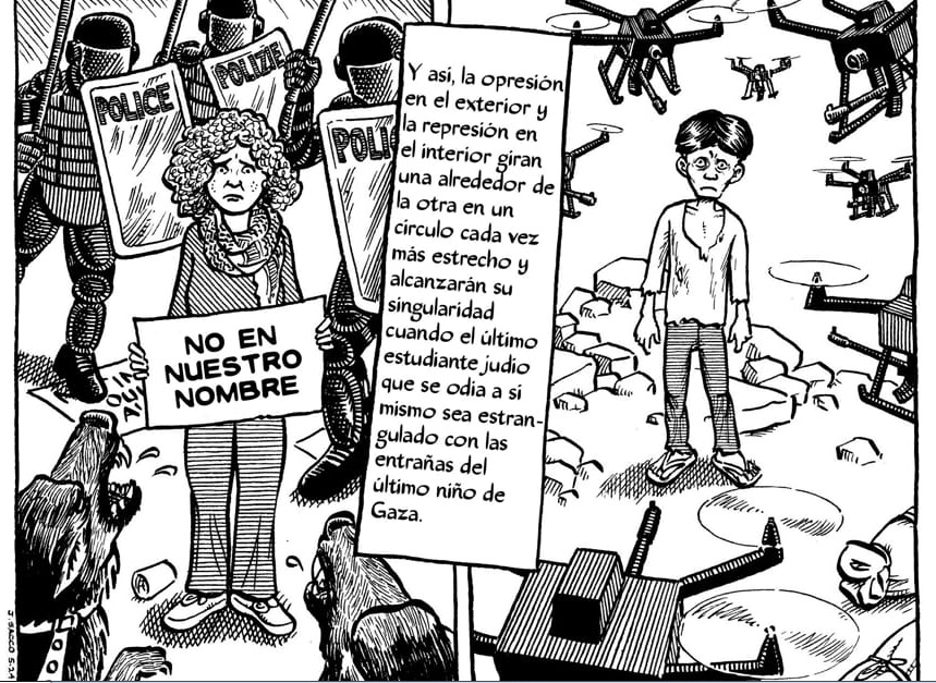 La guerra en Gaza nos tira esa realidad a la cara y el propio autor, fiel a su estilo documental, se dibuja a sí mismo y nos dice: “Me encontré con todo este horror y tuve que hacer algo”. La pregunta que queda implícita es: ¿Y nosotros qué vamos a hacer? ¿Qué podemos hacer?