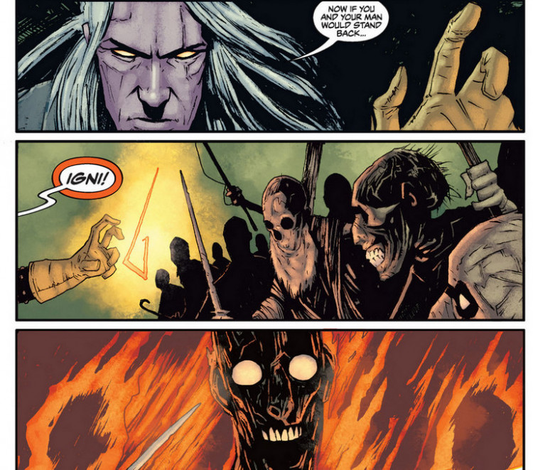 Witch’s Lament:Luego dela captura y obligatoria quema de una bruja, Geralt es asaltado por visiones de una niña secuestrada junto con otras que auguran un porvenir fatalista. Dibujado por Vanesa Del Rey uno esperaría algo un poco más nítido, que continúe con la línea de la serie, pero termina siendo el punto flojo. Los colores de Jordie Bellaire están muy bien, eso sí.