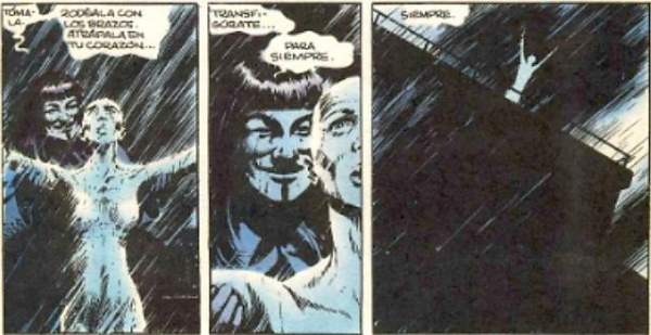 Para l@s que se aguantaron este desvarío y guitarreo frutal hasta el final: Espero haber alentado lecturas de este tipo, lecturas en las que hacemos el intento de identificar elementos de los diferentes entramados idiosincráticos de las distintas corrientes de pensamiento de la humanidad. Y, aunque debe notarse a la legua que no soy historiador, disfruté mucho pegáandome una re-lectura reciente de V de Vendetta; pero, esta vez, con un anotador y una Bic.